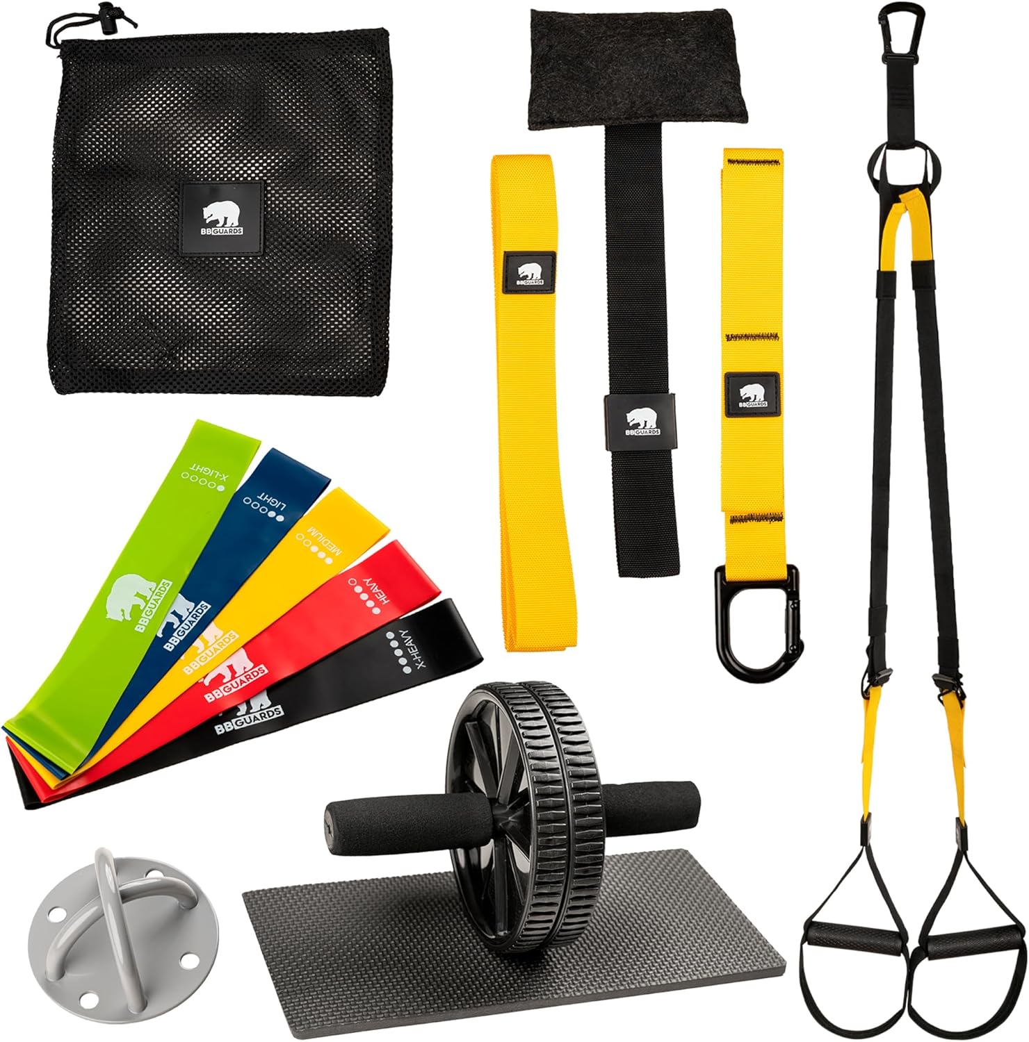 QUALITY GUARANTEE: We are confident that the suspension training set, fitness elastic bands and ab roller will meet your needs 100%. If you have any problems, please contact us directly and we will be happy to help.