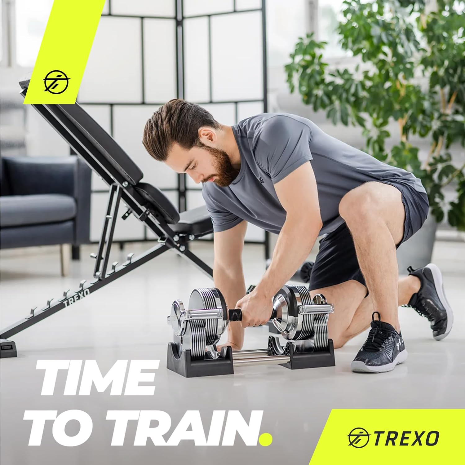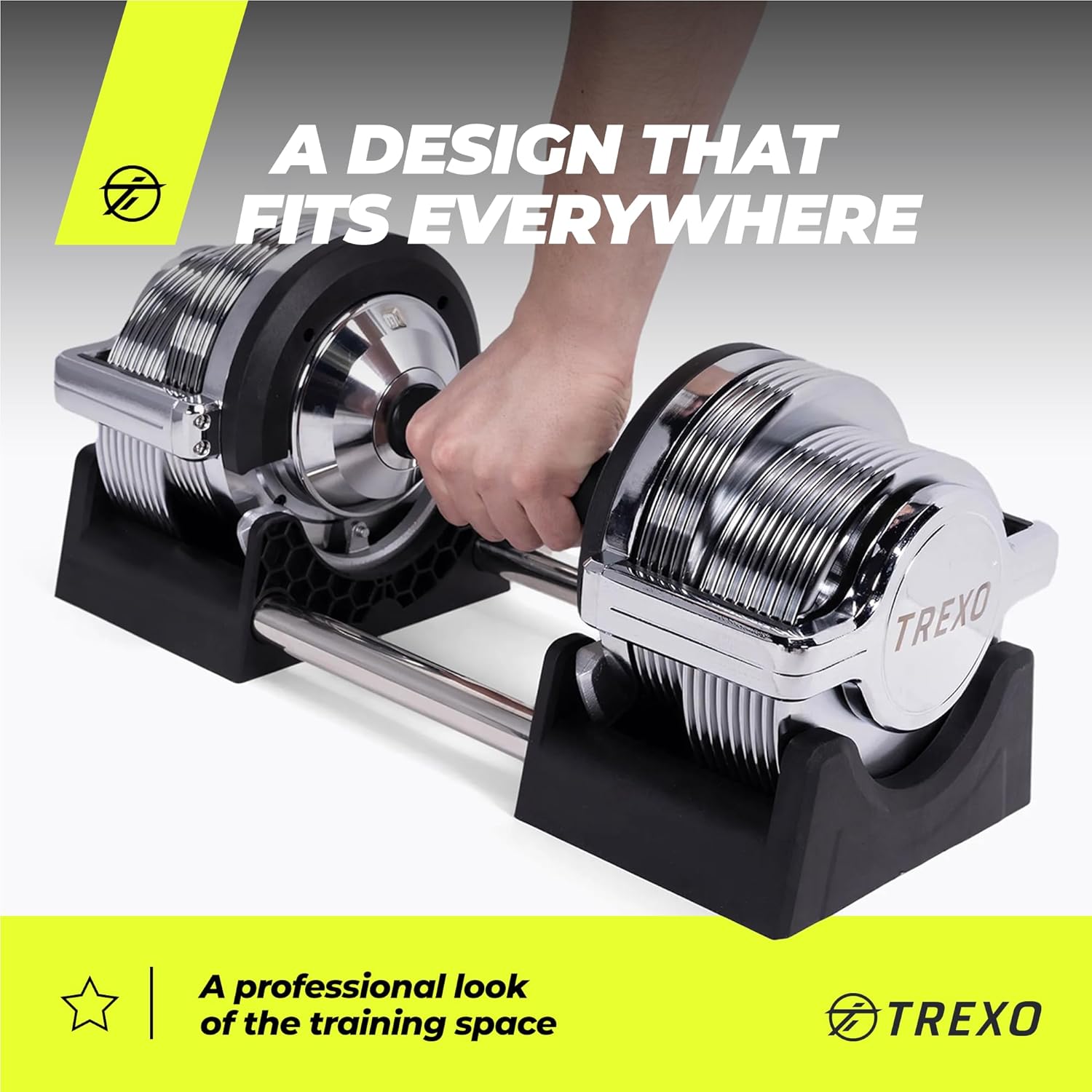 DIVERSE USES: The adjustable dumbbell allows you to perform a variety of exercises, using multiple muscle groups. With its help, you will perform strength training by doing squats, rowing or bench press.