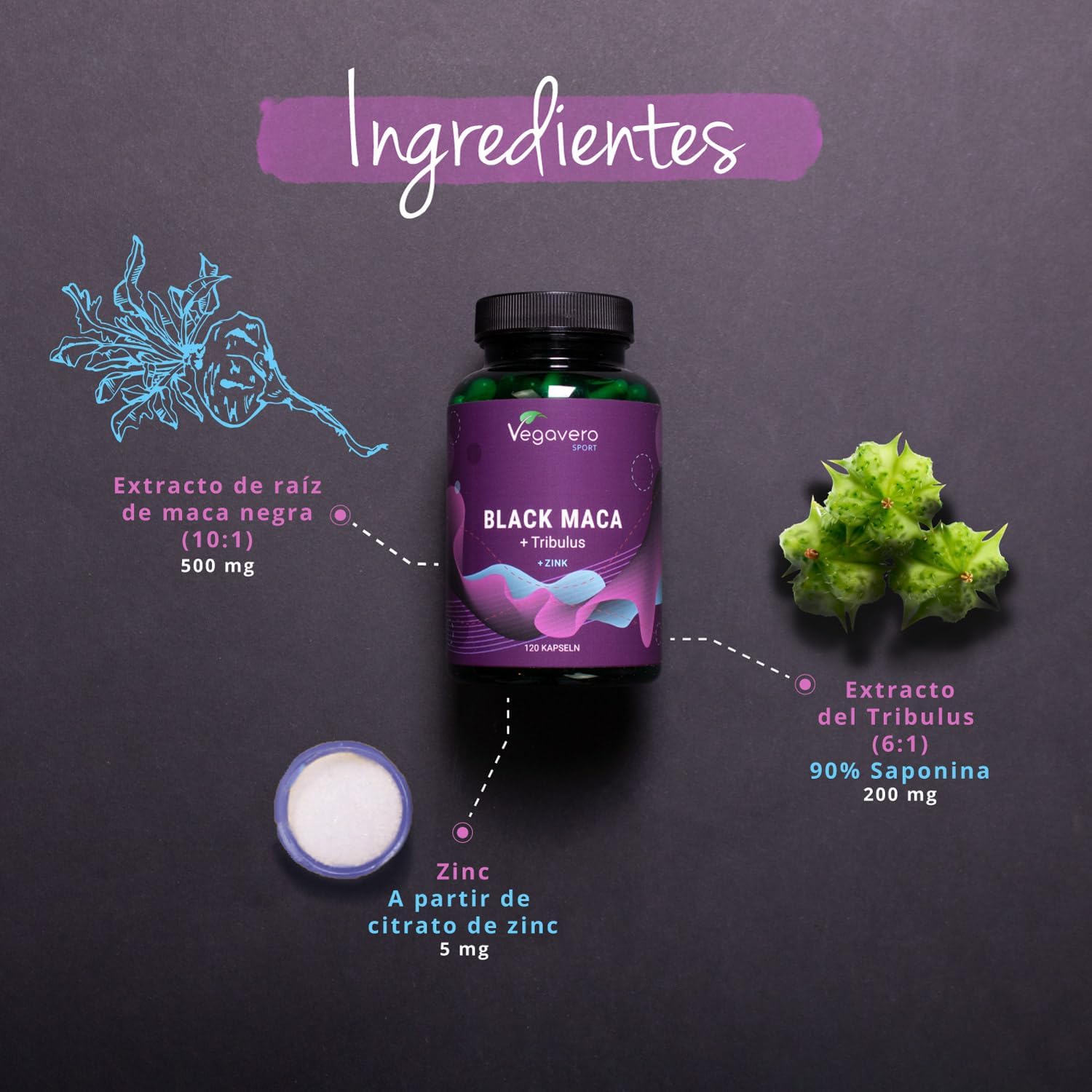 ⭐ ONLY ONE CAPSULE A DAY: Due to the high dose of pure state maca root, Terrestrial Tribulus and Zinc per capsule in our complex, the recommended daily dose is only 1 capsule. Thus, 120 capsules per can are enough for 4 months. Our supplement is one of the few sports products composed only of completely natural ingredients and without artificial additives and is officially registered with the Spanish Agency for Food Safety and Nutrition (asean).