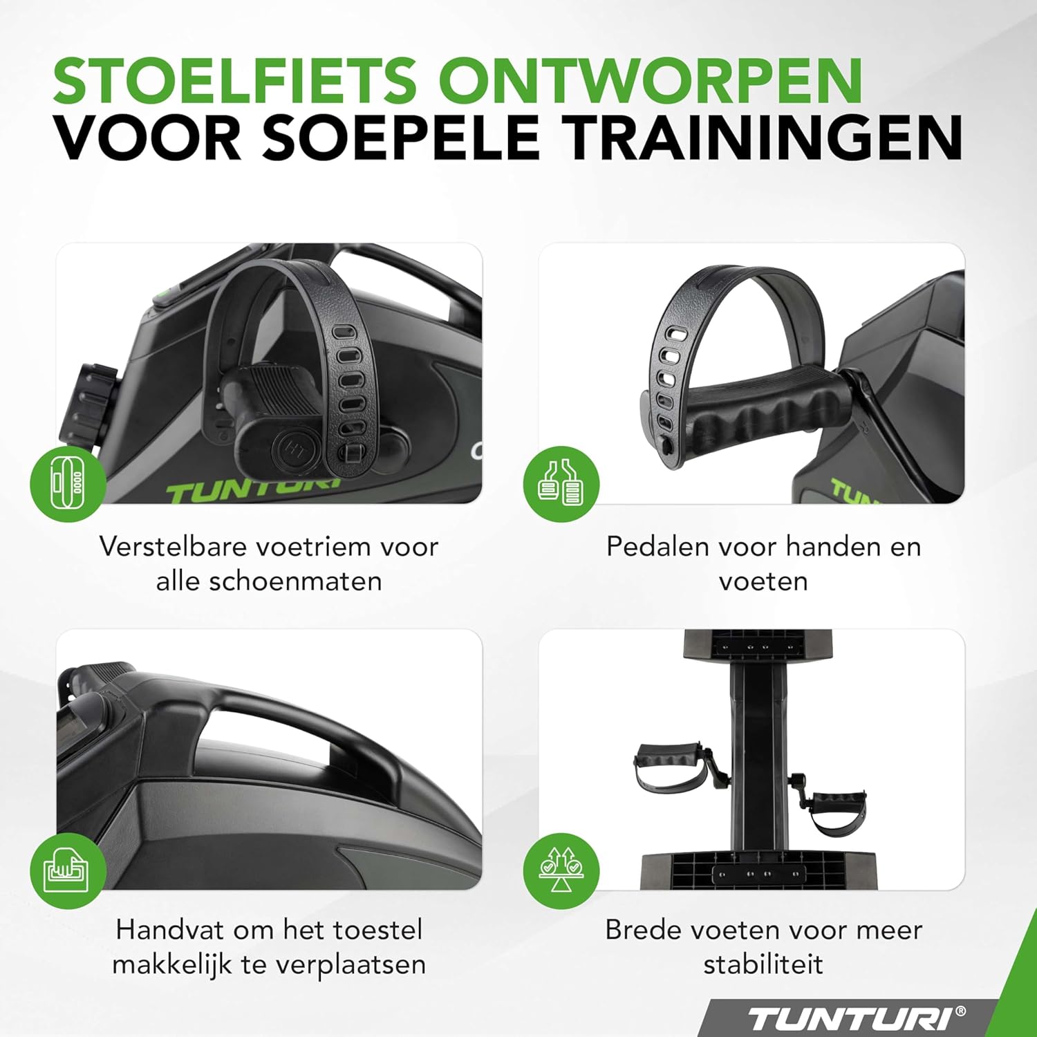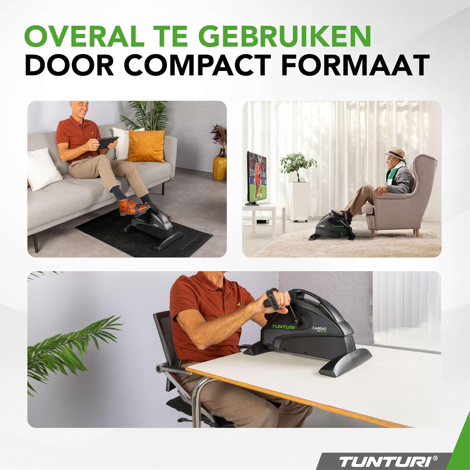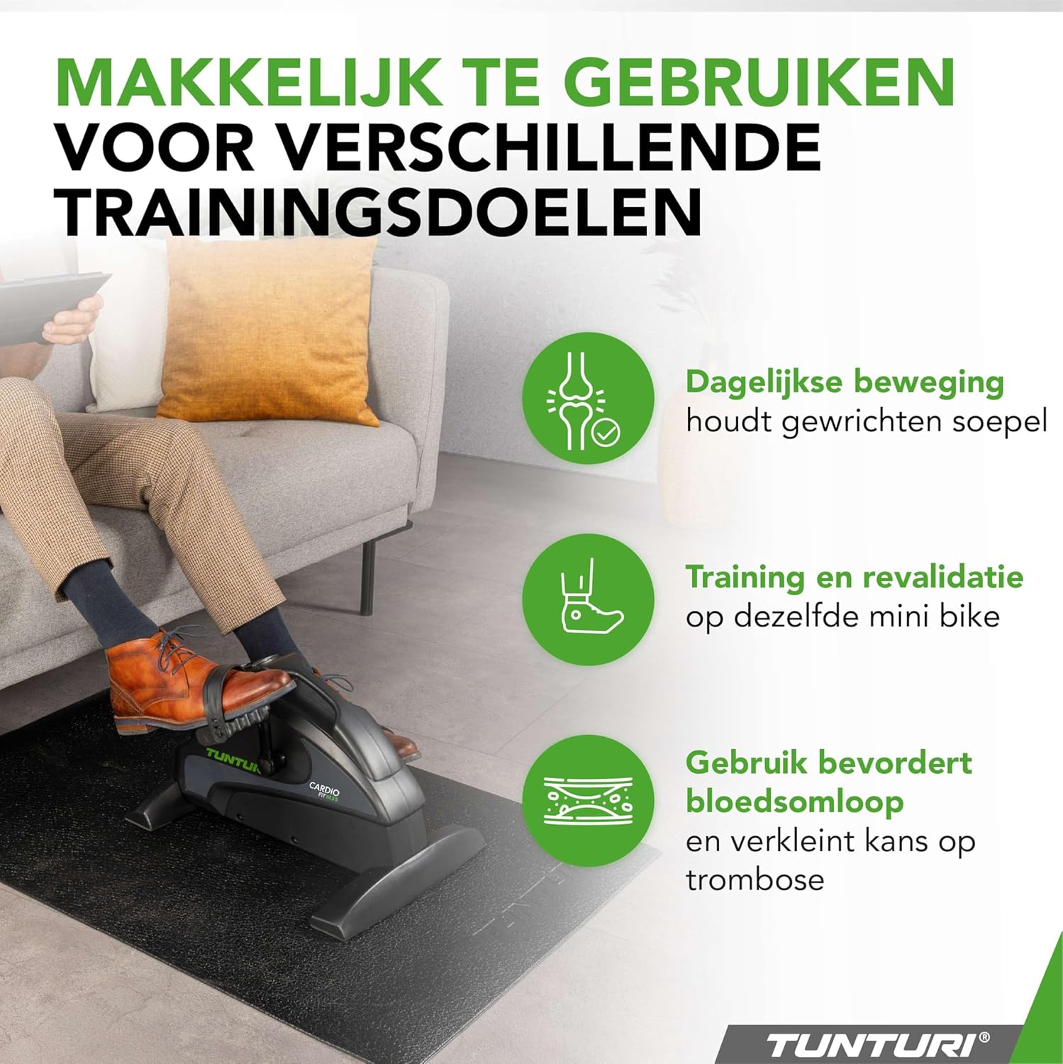 ¿Quieres mantenerte activo o buscas un compañero para ayudarte con la rehabilitación? Este entrenador de movimiento compacto de Tunturi te ayudará donde sea que elijas usarlo: en tu escritorio, sentado en una silla o simplemente en el sofá.