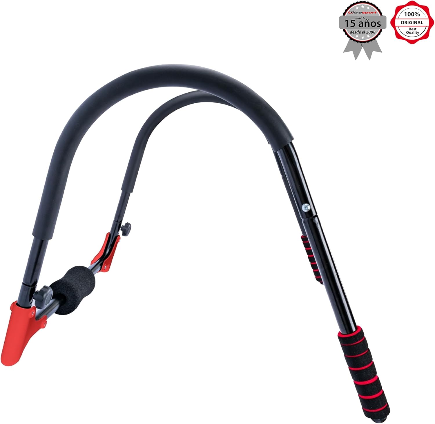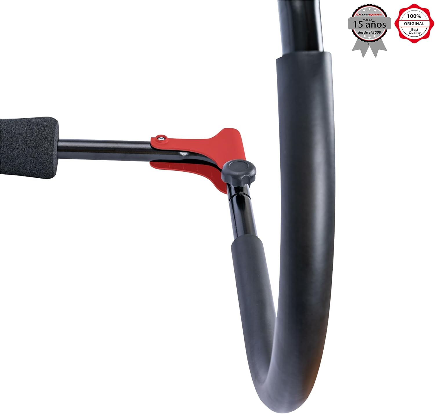 The small headrest has an ergonomic shape, the handles are gently padded – the size of this abdominal exerciser can be adjusted with the two large adjustment screws located on the sides