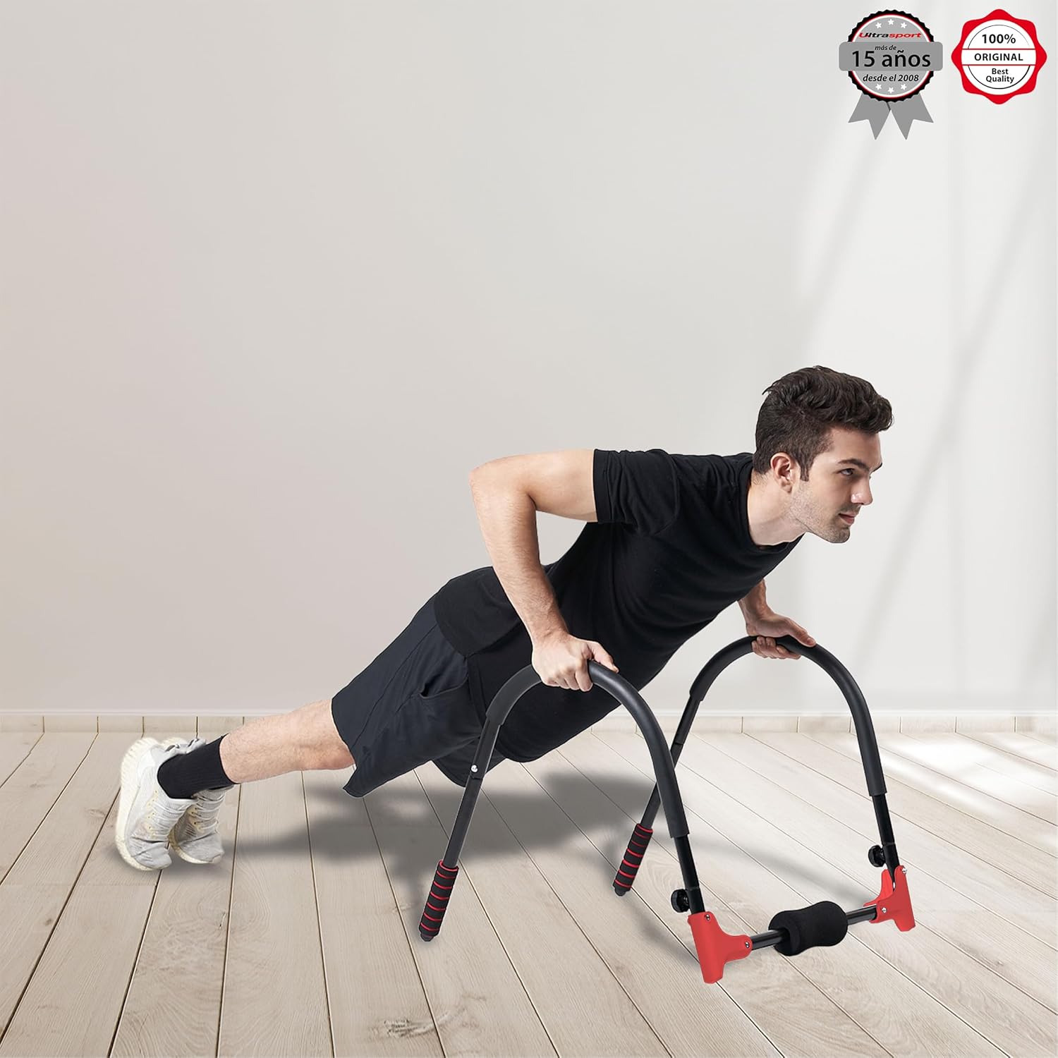 With this compact sports apparatus, you can perform the typical sit-ups or squats, as well as deep squats, push-ups or pull-ups; instructions include training examples