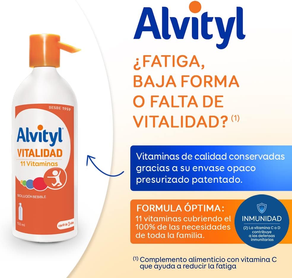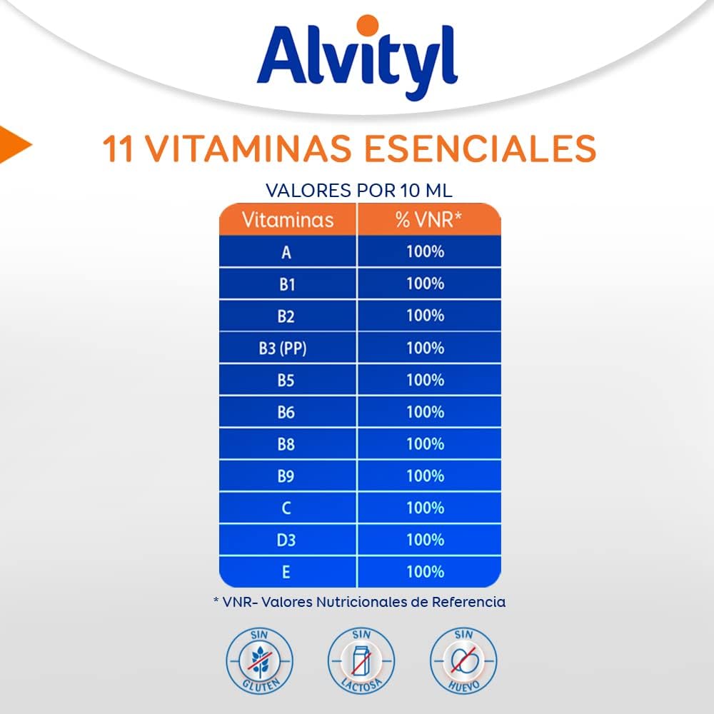 Alvityl Multivitamin Syrup is a multivitamin complex based on 11 vitamins to cover 100% of the nutritional contributions of the whole family, from the age of 3 years. Its formulation rich in vitamin E, D3, C, B1, B6, B8 (biotin) B9 and B12 helps reduce tiredness and fatigue. Vitamin requirements may be higher in active adults, and especially in growing children. Alvityl Multivitamin Syrup is recommended for life stages or situations in which the need for vitamins is increased (growth, intense physical activity, seasonal changes…) and to compensate for certain deficits of vitamin inputs (lack of appetite, unbalanced diet …).