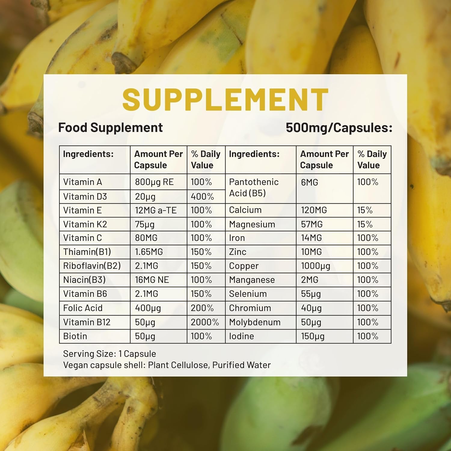 HIGH STRENGTH, PREMIUM QUALITY FORMULA contains 50 mcg of Vitamin B12, 20 mcg of D3, 75 mcg of K2 plus a high dose of 20 other vitamins and minerals. More than you’ll find in many other multivitamins.