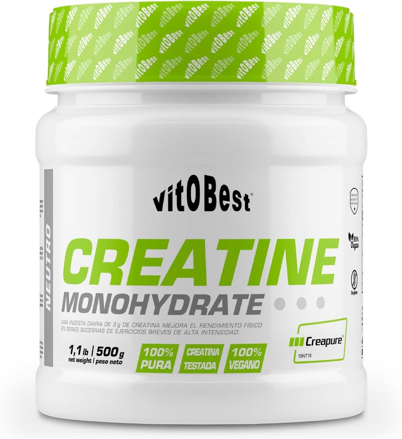 Vitobest Creatine Monohydrate 500g with Creapure seal is the ultimate supplement for those looking to improve their physical performance safely and effectively. This high purity creatine helps increase muscle strength, improve endurance and speed up recovery after exercise. Its flavorless format allows for perfect integration into any beverage, and its 500g presentation offers up to 100 doses, ideal for athletes who train consistently. Made under strict quality standards, this creatine is suitable for all types of sports disciplines and diets. Whether you are a professional athlete, gym enthusiast or just someone who wants to give their best in every workout, this supplement will help you reach your physical goals with confidence.
