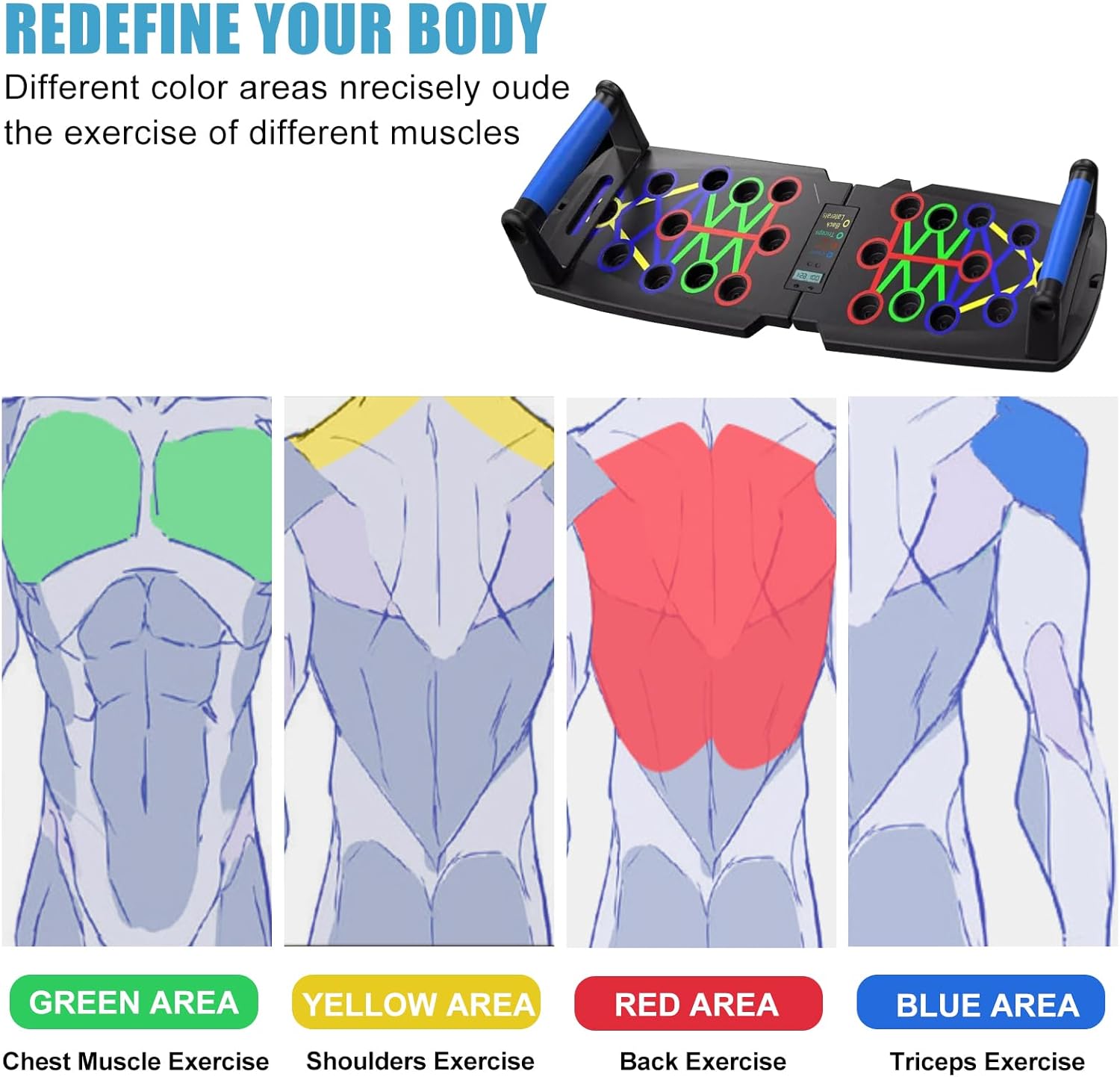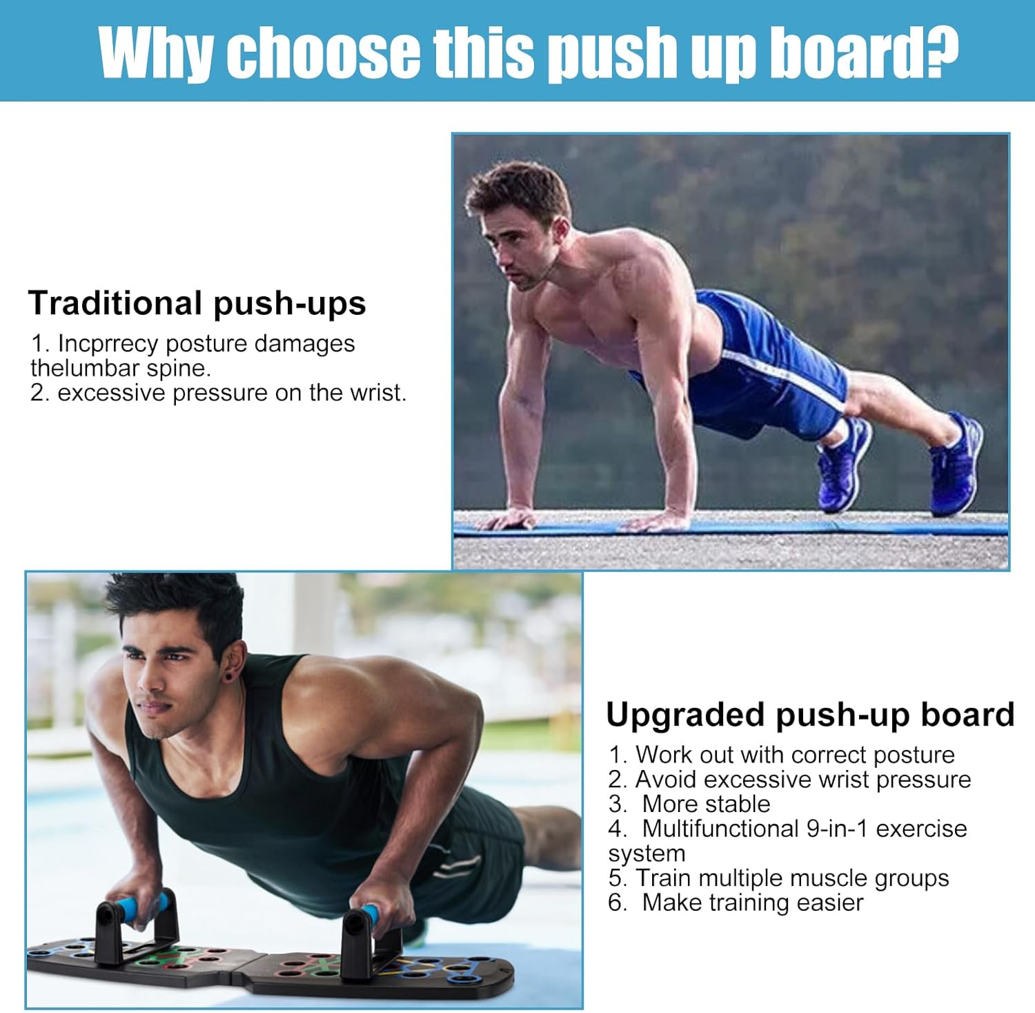 - MULTI-SITE MUSCLE TRAINING – Push-up board pushups to effectively train different muscle groups such as shoulders, arms, back, abdomen and chest. Different holes on the board allow for different force efforts.