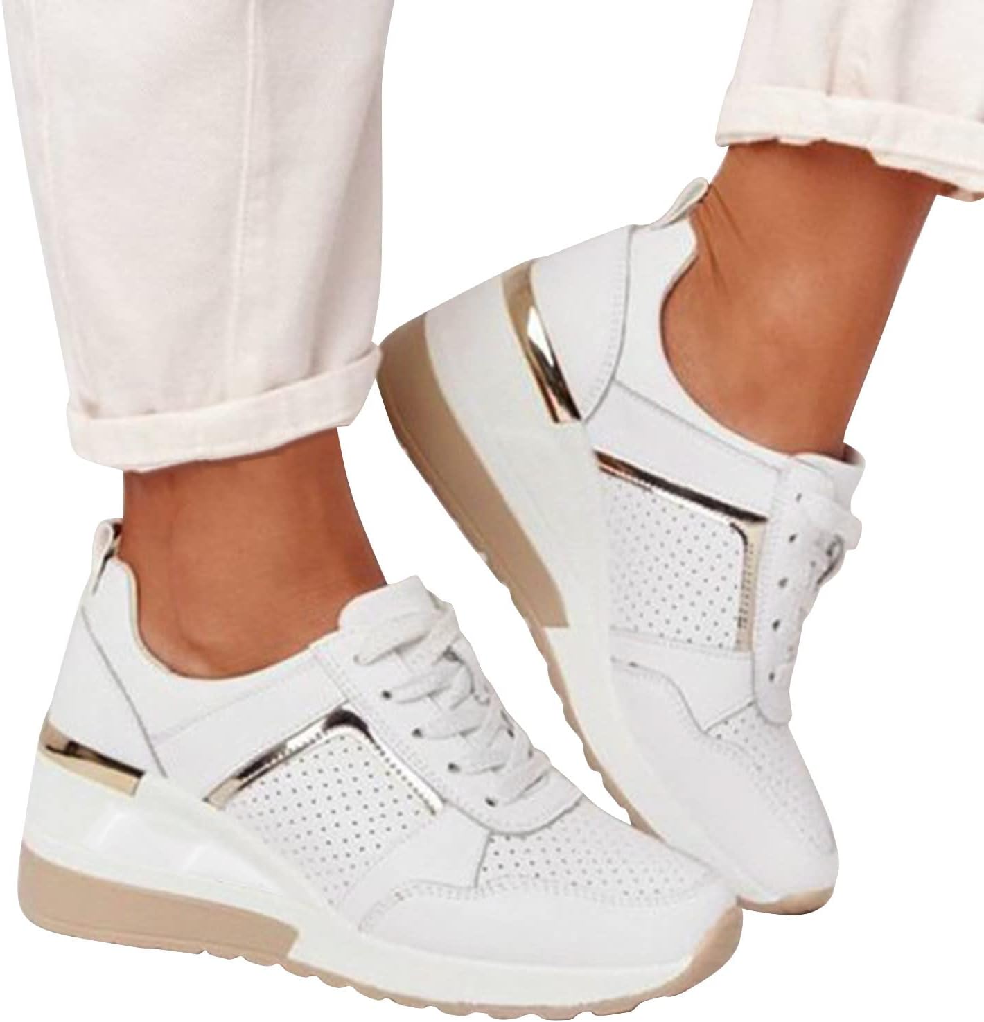 Women’s Platform Shoes, Lace-Up, Wedge, Cushioning, Leisure, Non-Slip, Walking, Comfortable, Sneakers, Platform Shoes,