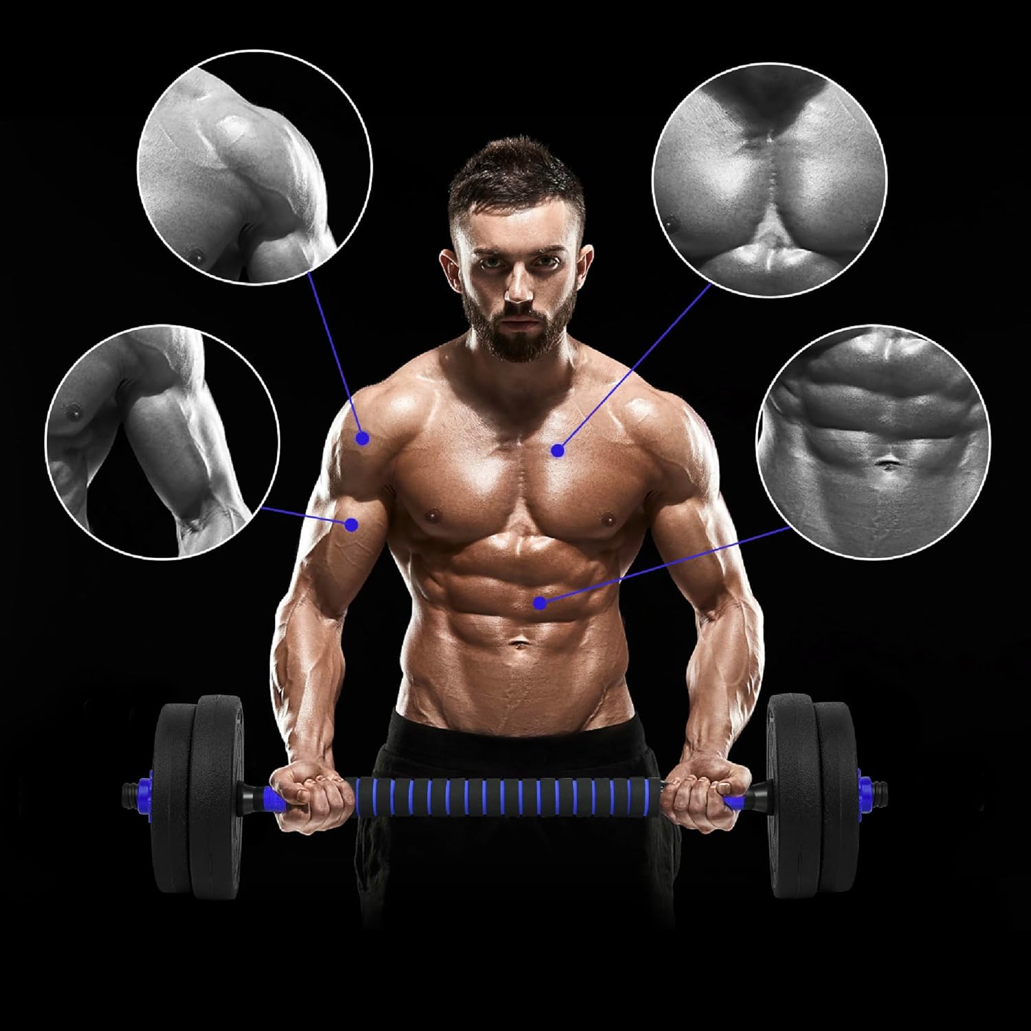 VERSATILE MUSCLE TRAINING. Whether arms, chest, shoulders, abdomen or legs, with our dumbbell set you can work out the most diverse muscle groups.