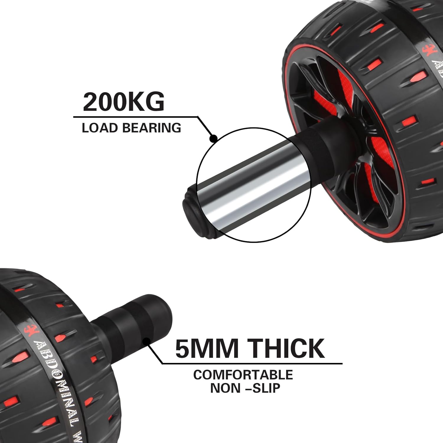 Premium Material The ab rollers as indoor fitness appliances are made of multi-layer composite material, which has better slip resistance and wear resistance, will not scratch the floor, but also reduce the wear of the wheels and extend the service life.