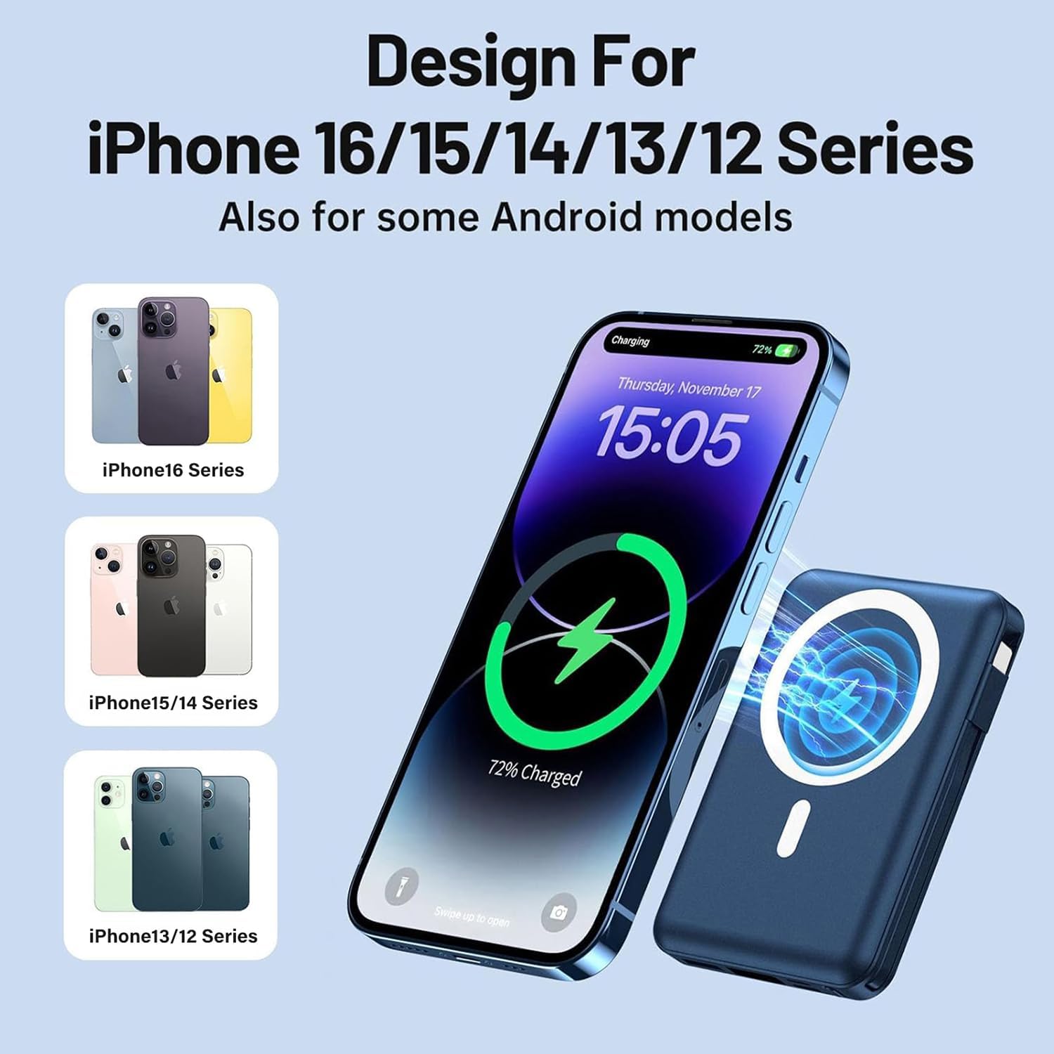 External Magnetic Battery Perfect for iPhone: External battery with the latest magnetic technology works with iPhone 12/13/14/15/16 Plus/Pro/Max/Mini series(Note: it must be aligned with magnetic suction, without cases or with magnetic cases), the strong magnetic force firmly fits the iPhone and power bank without falling, the built-in soft silicone material can better protect your phone against scratches and damage when wireless charging protection